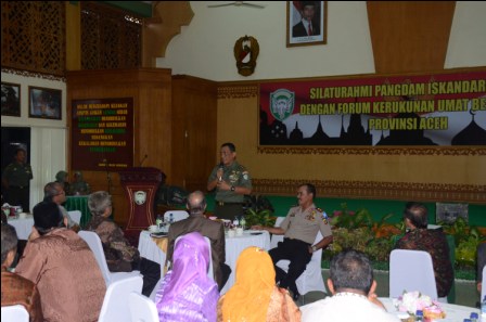 Pangdam IM Mayjen TNI Agus Kriswanto menggelar silaturahmi dengan Forum Umat Beragama (FKUB) se-Provinsi Aceh bertempat di Balai Teuku Umar (BTU) Kodam Iskandar Muda, Kamis (23/07).