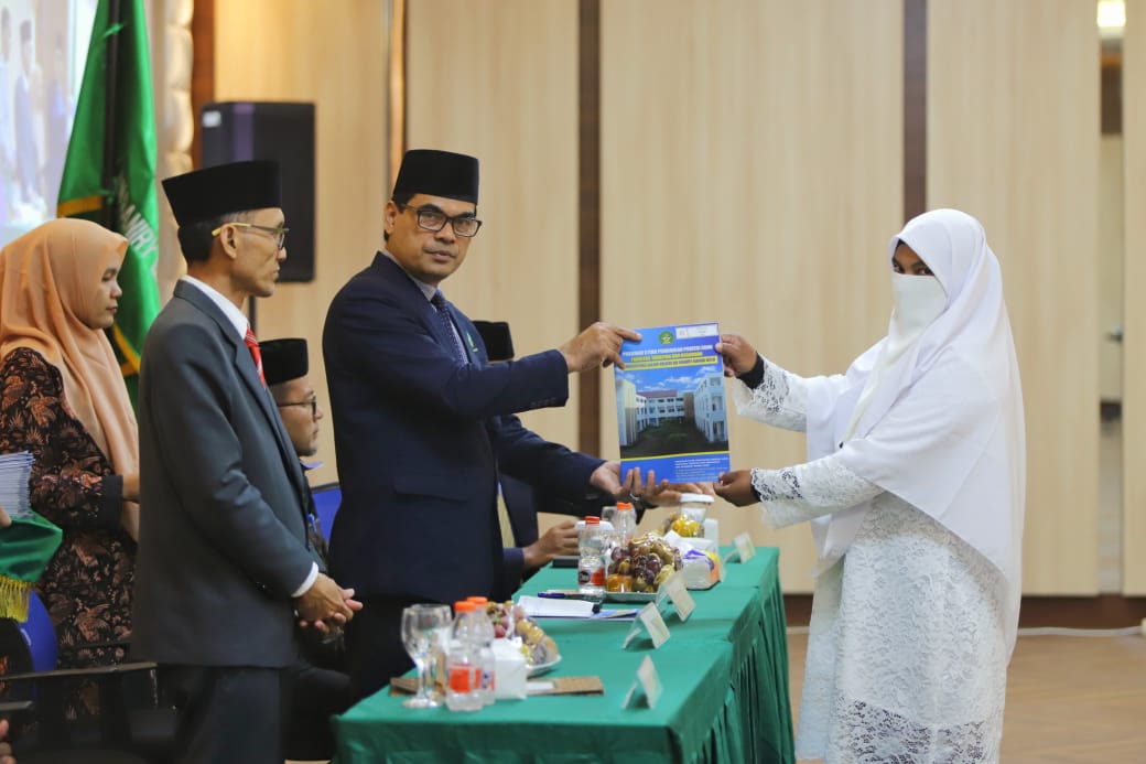 Prosesi pengukuhan berlangsung di Aula Gedung RKT Kampus UIN Ar-Raniry dan dihadiri oleh sejumlah pejabat, termasuk Kepala Kantor Wilayah Kementerian Agama (Kakanwil Kemenag) Aceh Drs Azhari MSi, Kepala Baitul Mal Aceh, Ketua Badan Wakaf Indonesia (BWI) Aceh, serta perwakilan Kantor Kemenag Kabupaten Padang Lawas, Sumatera Utara.