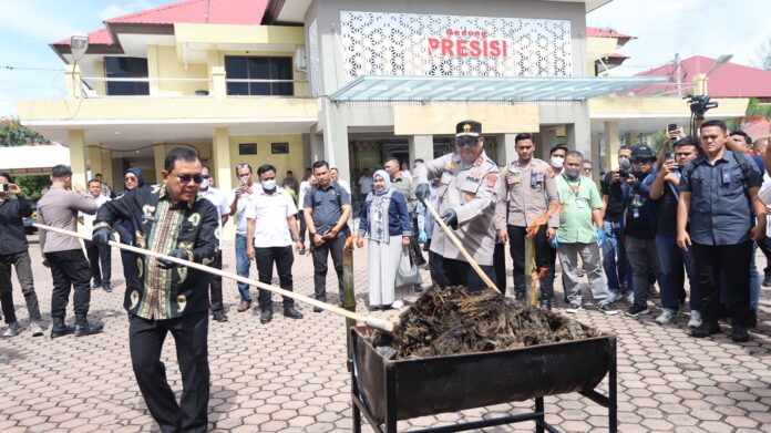 Banda Aceh — Kapolda Aceh Irjen Dr. Achmad Kartiko memimpin kegiatan pemusnahan barang bukti narkotika hasil pengungkapan Direktorat Reserse Narkoba (Ditresnarkoba) Polda Aceh, bekerja sama dengan Direktorat Intelkam, Kantor Wilayah Bea Cukai, Polresta Banda Aceh, Polres Langsa, dan Polres Gayo Lues. Barang bukti yang dimusnahkan terdiri atas 25 kilogram kokain, 108 kilogram sabu, dan 640 kilogram ganja.