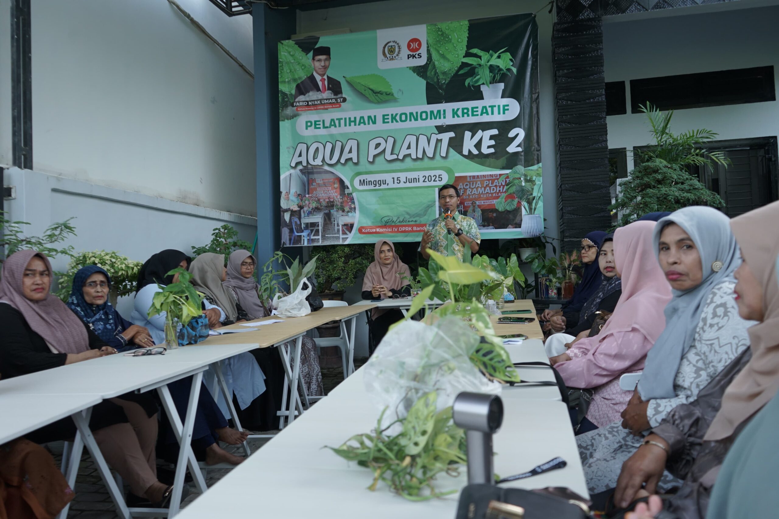 Ketua Komisi IV DPRK Banda Aceh, Farid Nyak Umar kembali menggelar Training Aqua Plant Tahap ke-2 untuk ibu-ibu dalam wilayah Kecamatan Kuta Alam di Taman Bonsai Kutaraja, Gampong Beurawe, Banda Aceh pada Minggu (15/06/25).