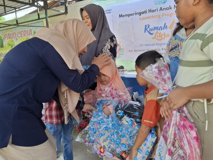 PT Pelindo Regional 1 berkolaborasi dengan Human Initiative melaksanakan kegiatan Launching Program Rumah Literasi sekaligus pemberian bantuan paket sekolah untuk 50 anak dhuafa di Kelurahan Belawan Sicanang pada pekan lalu.