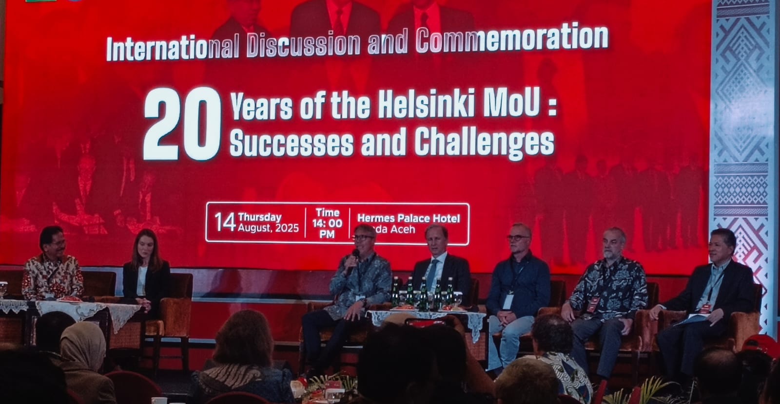 Dua dekade setelah penandatanganan perjanjian damai Helsinki, berbagai pihak kembali meneguhkan komitmen untuk menjaga keberlangsungan perdamaian di Aceh. Pesan itu mengemuka dalam diskusi internasional bertajuk “20 Years of Helsinki MoU: Successes and Challenges” yang berlangsung di Hermes Palace Hotel, Banda Aceh, Kamis (14/8).