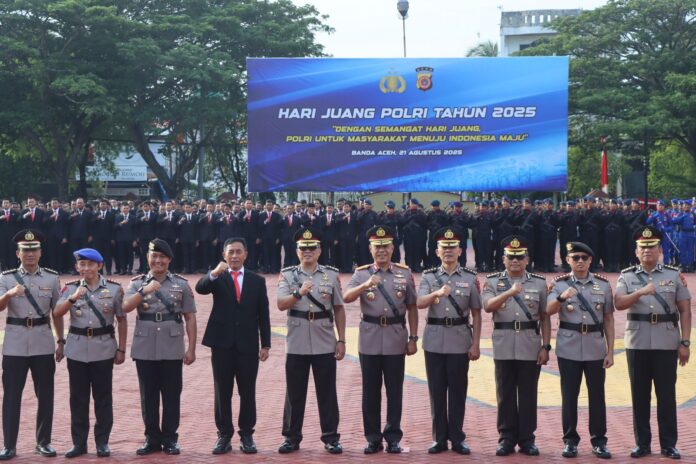 Banda Aceh — Kepolisian Daerah (Polda) Aceh menggelar upacara Hari Juang Polri di lapangan apel Mapolda Aceh, Kamis, 21 Agustus 2025. Upacara dipimpin Wakapolda Aceh Brigjen Ari Wahyu Widodo dan diikuti seluruh personel.