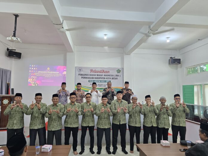 Ketua Badan Wakaf Indonesia (BWI) Provinsi Aceh Prof DR Fauzi Saleh MA melantik Pengurus Badan Wakaf Indonesia (BWI) Perwakilan Kabupaten Aceh Besar periode 2025 -2028 di Aula Pondok Pesantren Al Manar Cot Irie Kecamatan Krueng Barona Jaya, Rabu ( 10/09/2025).