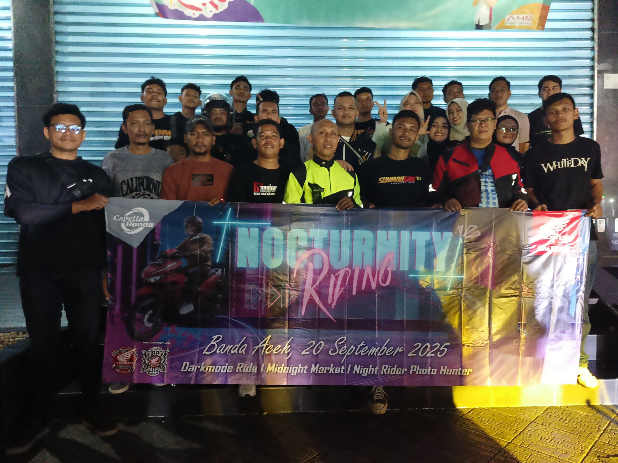 PT Capella Dinamik Nusantara (Capella Honda) main dealer sepeda motor Honda menggelar kegiatan ‘Nocturnity Riding’ yang merupakan kegiatan terbaru dengan menyuguhkan sensasi berkendara malam hari melalui city rolling dan dilanjutkan dengan gathering komunitas di Bang IS Cafe Banda Aceh, Sabtu (20/09) silam.