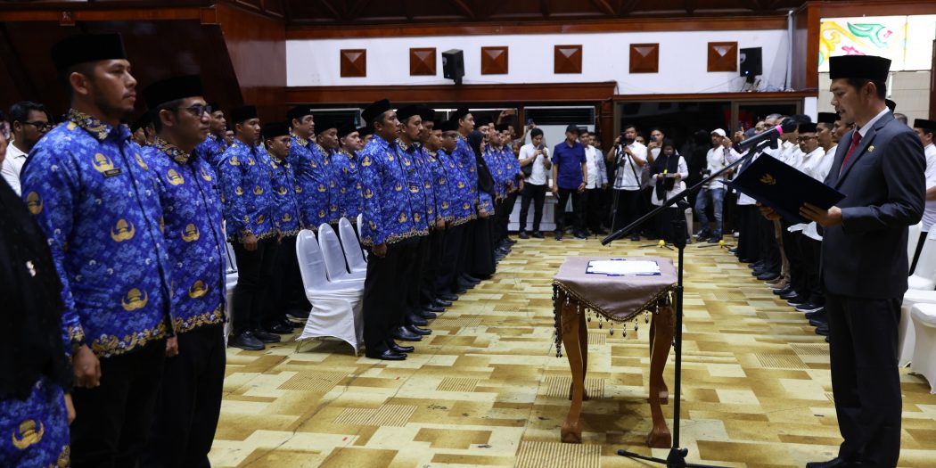 Sekretaris Daerah Aceh, Muhammad Nasir, melantik 290 pejabat eselon III dan IV dalam lingkungan Pemerintah Aceh, di Anjong Mon Mata Komplek Meuligoe Gubernur Aceh, Jumat, (26/9/2025).