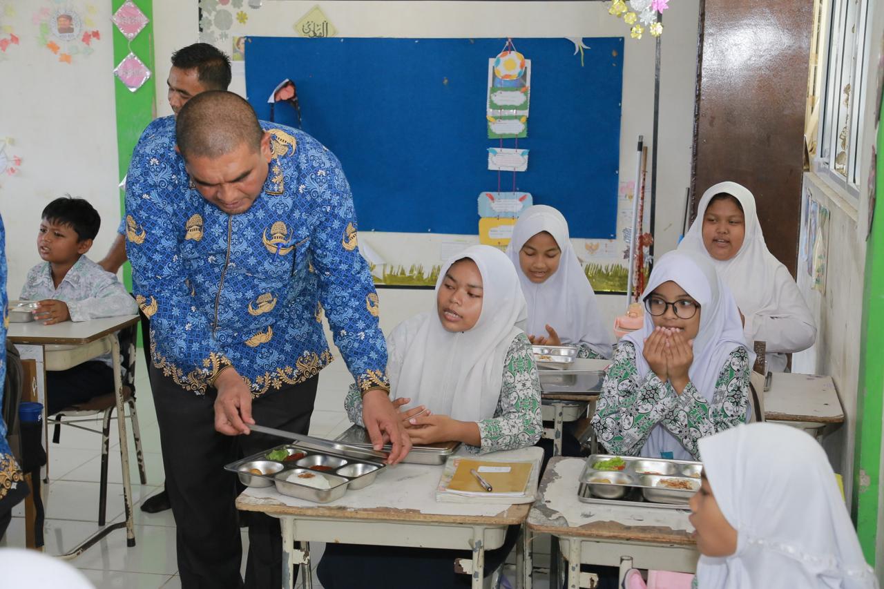 Kepala Kantor Kementerian Agama Kabupaten Aceh Besar Saifuddin meninjau langsung pelaksanaan program Makan Bergizi Gratis (MBG) di MIN 35 Aceh Besar, Sibreh, Aceh Besar, Rabu (1/10/2025).