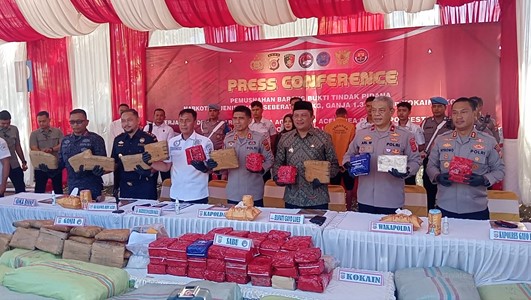 Konferensi pers turut dihadiri Wakapolda Aceh, Bupati Gayo Lues, Kepala BNNP Aceh, Kepala Kanwil DJBC Aceh, Dirnarkoba Polda Aceh, Kapolres Gayo Lues, serta pejabat utama Polda Aceh.
