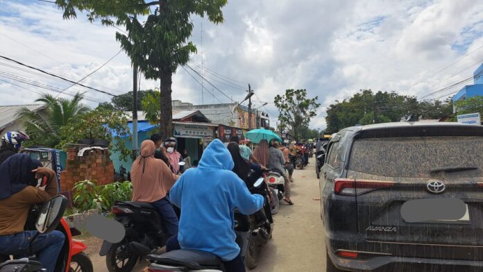 Rahmi menuturkan banyak warga memilih bertahan di antrean sepanjang malam dengan kendaraan terparkir di badan jalan. Menurutnya, penjualan eceran di tingkat masyarakat melonjak drastis.