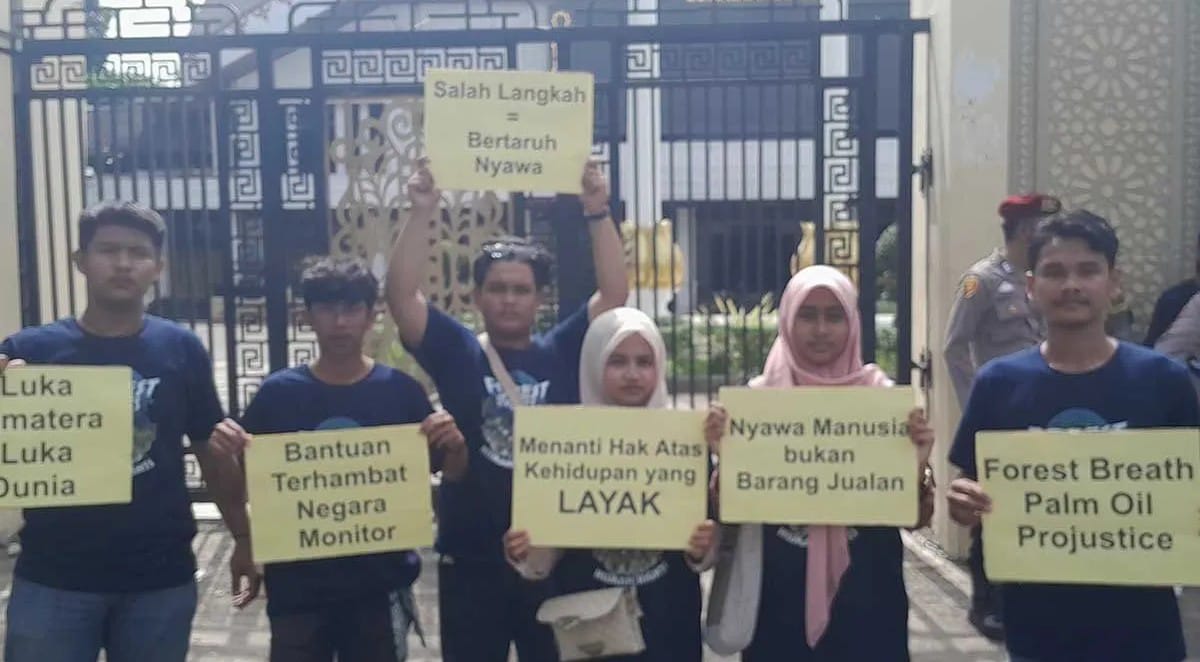 Desakan kepada pemerintah pusat untuk segera menetapkan Status Bencana Nasional atas bencana banjir dan longsor yang melanda Aceh, Sumatera Utara, dan Sumatera Barat terus menguat. Selain Komisi Nasional Hak Asasi Manusia (Komnas HAM), koalisi masyarakat sipil bersama perwakilan mahasiswa juga menyuarakan tuntutan serupa melalui aksi damai di halaman Gedung Dewan Perwakilan Rakyat Aceh (DPRA), Jalan Teungku Daod Beureeh, Banda Aceh pada Selasa 16 Desember 2025.