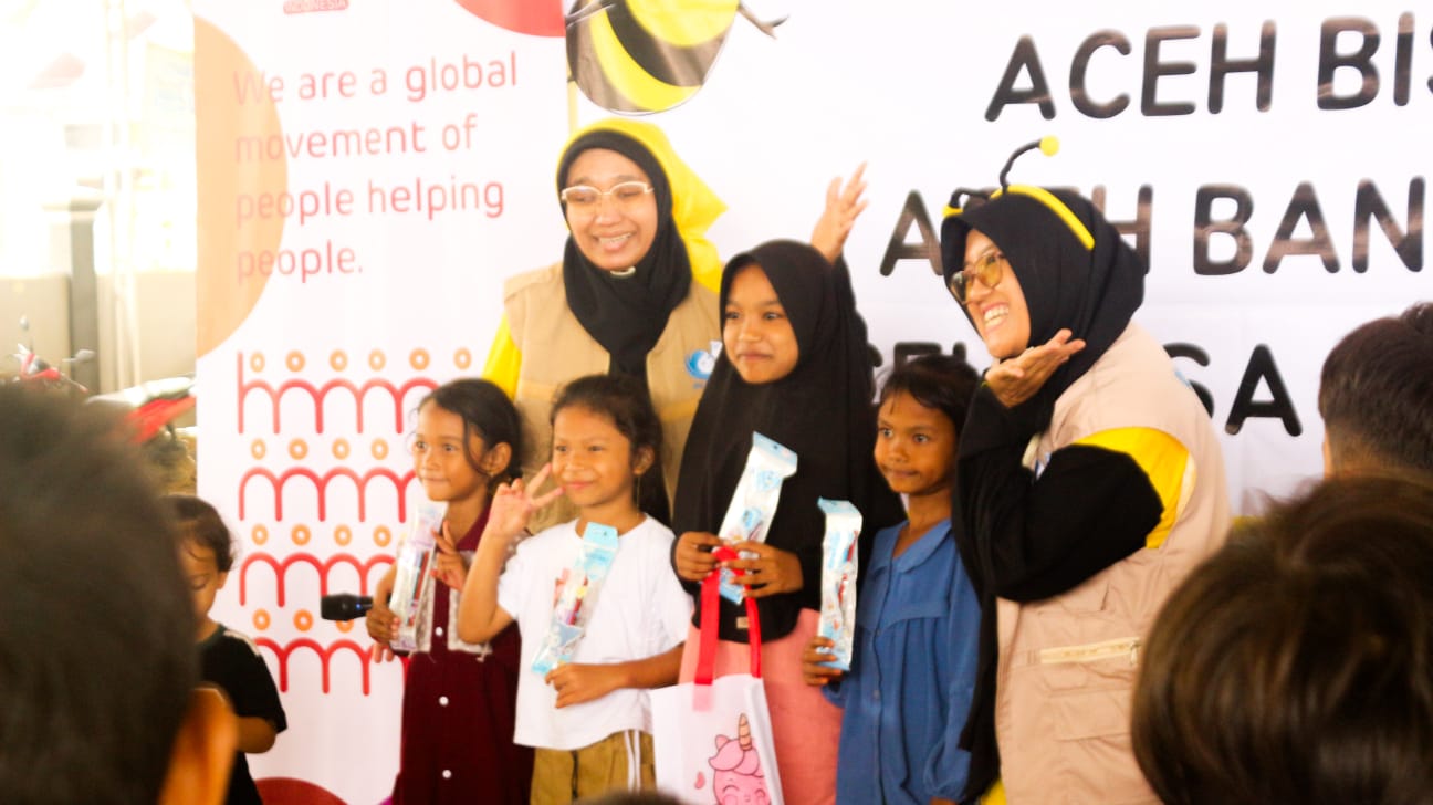 Mengusung konsep Mini Board Gameland, para relawan dan fasilitator tampil dengan kostum lebah yang langsung menarik perhatian anak-anak. Suasana ceria pun tercipta saat anak-anak bermain, menari, dan berinteraksi dengan penuh tawa, tanpa beban trauma.