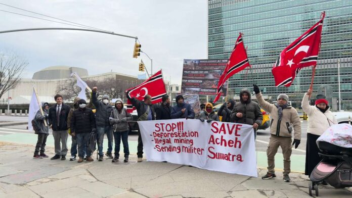 Aksi yang berlangsung di depan Kedutaan Besar Republik Indonesia (KBRI) New York serta di sekitar Markas Besar Perserikatan Bangsa-Bangsa (PBB) dimulai sekitar pukul 12.00 siang waktu setempat. Para peserta membawa beragam poster, spanduk, dan bendera Aceh, sebagai bentuk solidaritas kepada korban bencana serta simbol perlawanan terhadap lambatnya respons penanganan di dalam negeri.