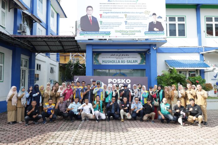 Banda Aceh – Kepala Balai Besar Pengawas Obat dan Makanan di Banda Aceh (BBPOM Aceh), Riyanto melalui Posko BPOM Peduli Aceh secara resmi melepas relawan kemanusiaan yang akan bertugas membantu pemulihan layanan kesehatan bagi masyarakat terdampak banjir bandang di Kabupaten Aceh Tamiang pada Selasa (06/01/2026). Pelepasan relawan yang berlangsung di Halaman Kantor BBPOM Aceh ini turut di hadiri Direktur Politeknik Kesehatan (Poltekkes) Kementerian Kesehatan (Kemenkes) Aceh, Abdurrahman; Kepala Balai Laboratorium Kesehatan Masyarakat (Labkesmas) Kota Banda Aceh, Jontari; Kepala Kepala Balai Kekarantinaan Kesehatan (BKK) Kelas I Banda Aceh, Ali Isha Wardhana dan Perwakilan Kepala BKK Kelas II Kota Sabang.