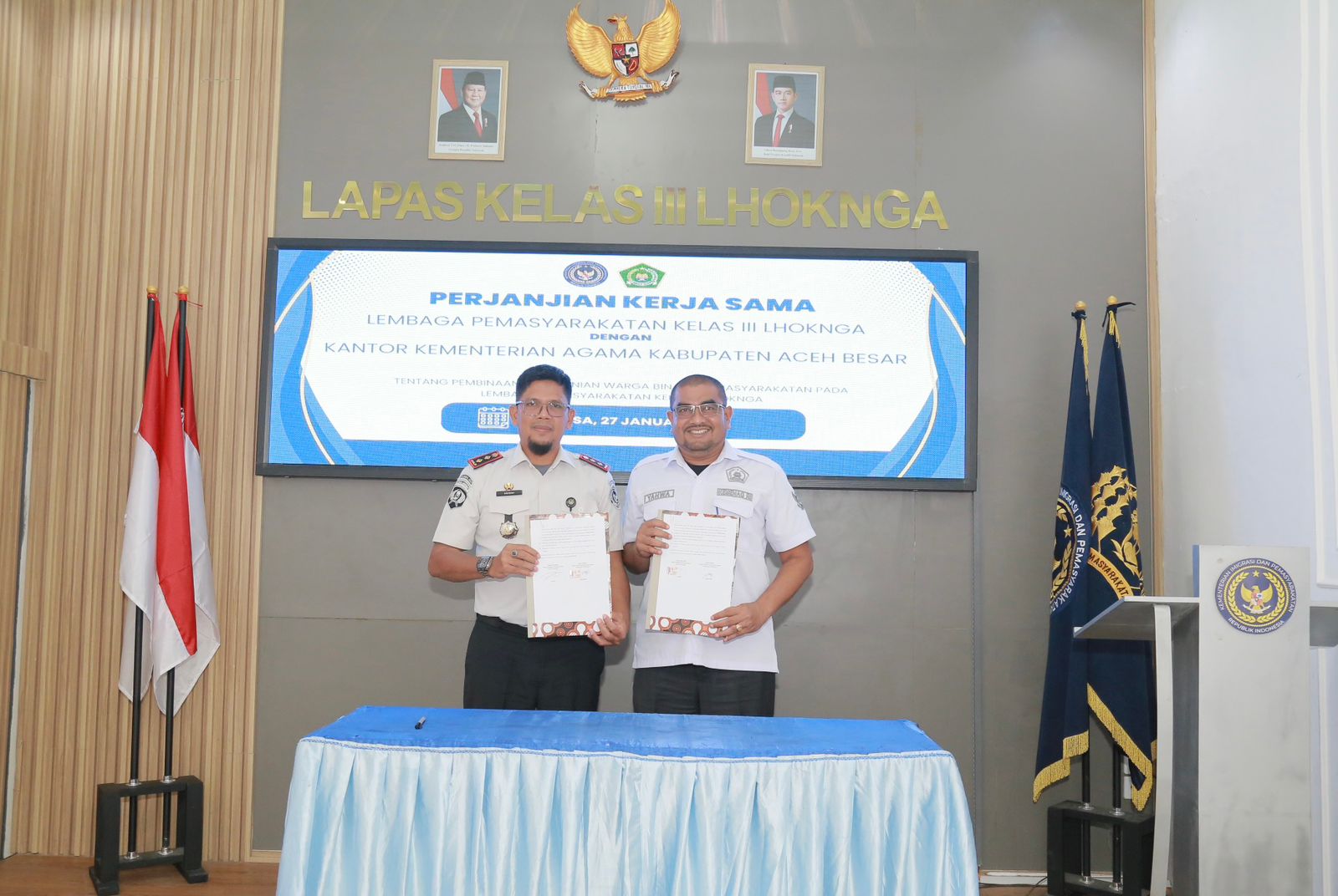 Kantor Kementerian Agama Kabupaten Aceh Besar kembali menandatangani kerjasama dengan Lembaga Pemasyarakatan (Lapas) Kelas III Lhoknga untuk pembinaan kerohanian dan keagamaan warga binaan pemasyarakatan (WBP) atau akrab disebut program “penyuluh masuk penjara”.
