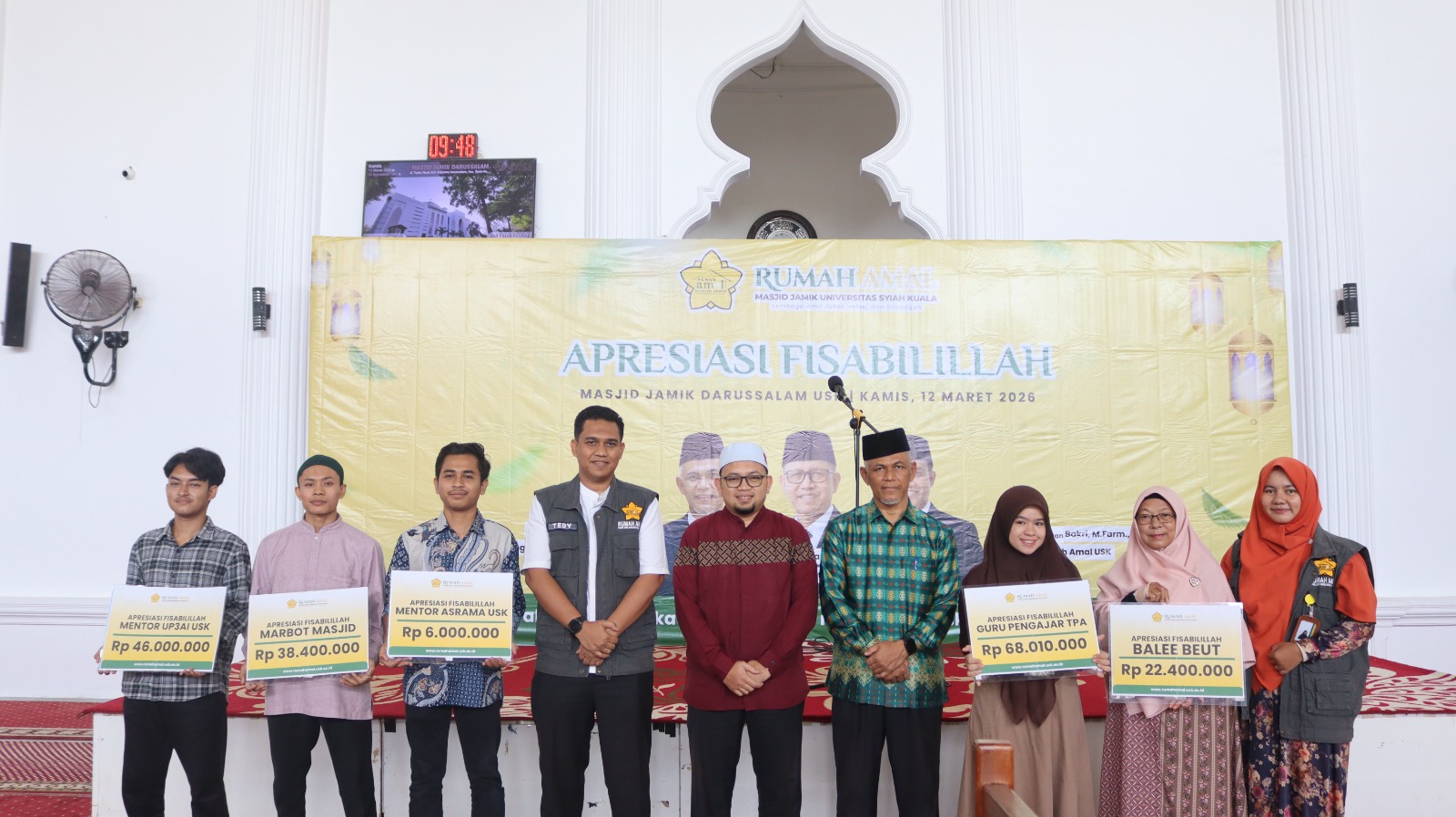Program ini merupakan bentuk kepedulian dan apresiasi kepada para pejuang dakwah yang berada di berbagai lini pengabdian, mulai dari pengajar Al-Qur’an, marbot masjid, hingga para mentor pembinaan mahasiswa di lingkungan Universitas Syiah Kuala.