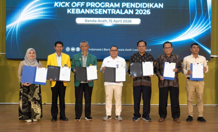 Kantor Perwakilan Bank Indonesia Provinsi Aceh resmi memulai Program Pendidikan Kebanksentralan (PPK) Tahun 2026 melalui penandatanganan Perjanjian Kerja Sama (PKS) bersama enam perguruan tinggi di Aceh. Keenam kampus tersebut meliputi Universitas Syiah Kuala, UIN Ar-Raniry Banda Aceh, Universitas Teuku Umar, Universitas Muhammadiyah Aceh, Universitas Abulyatama, dan Universitas Serambi Mekkah.